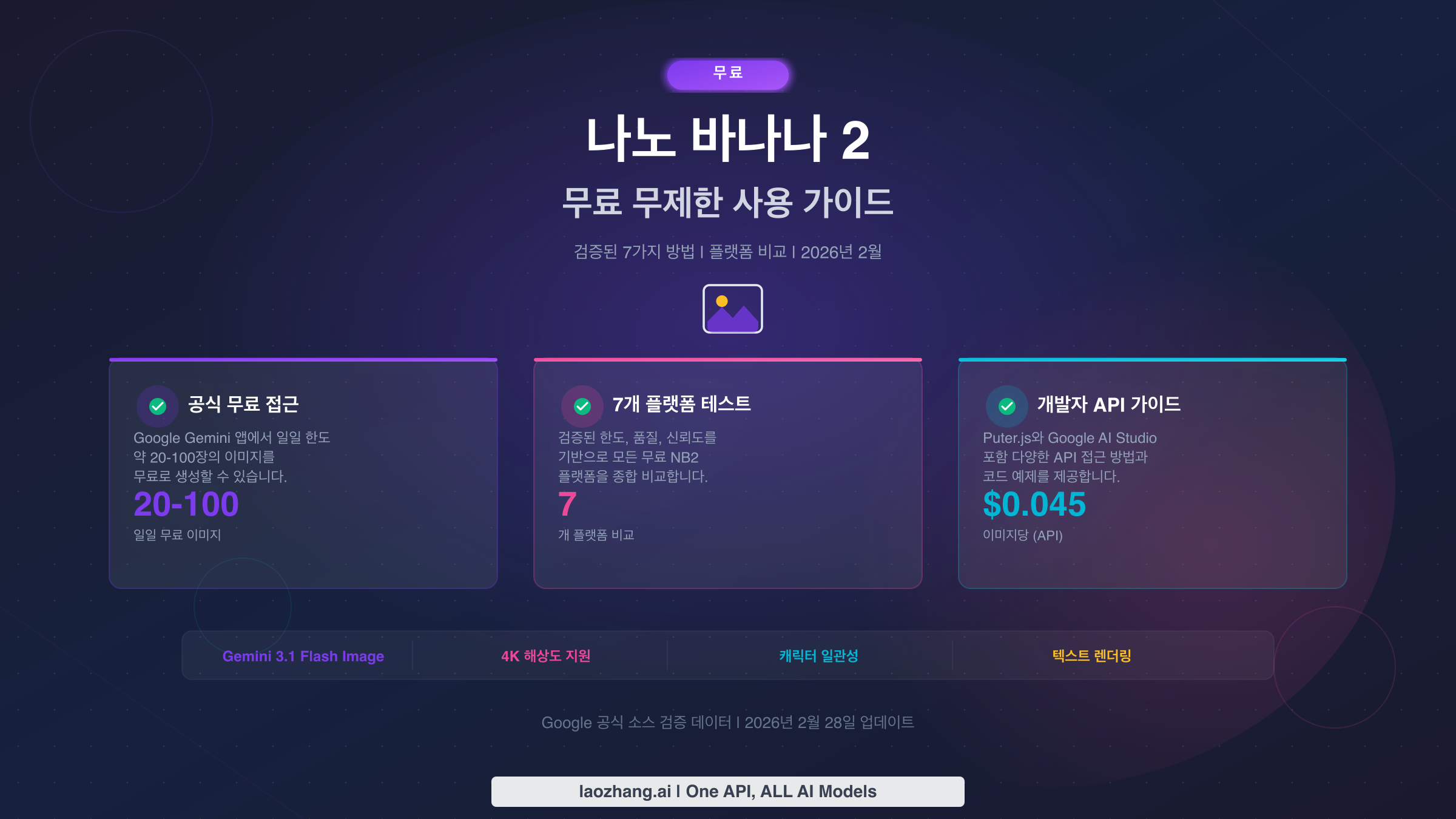 최저 API 가격조차 예산을 초과하는 사용자, 또는 NB2와 다른 모델을 단일 결제 시스템으로 접근하려는 사용자를 위해, API 중계 서비스는 의미 있는 비용 절감을 제공합니다. laozhang.ai와 같은 서비스는 여러 사용자의 수요를 집약하고, 제공업체와 볼륨 가격을 협상하며, 절감액을 개별 개발자에게 전달합니다. 가장 저렴한 나노 바나나 2 API 접근을 찾기 위해, 적절한 해상도 등급 선택과 효율적인 중계 서비스 사용의 조합으로 유효 이미지당 비용을 공식 정가보다 크게 낮출 수 있습니다. 나노 바나나 가격 계산기를 사용하여 해상도 비율, 일일 볼륨, 일괄 처리 할인을 고려한 특정 사용 패턴의 정확한 비용을 모델링할 수도 있습니다.