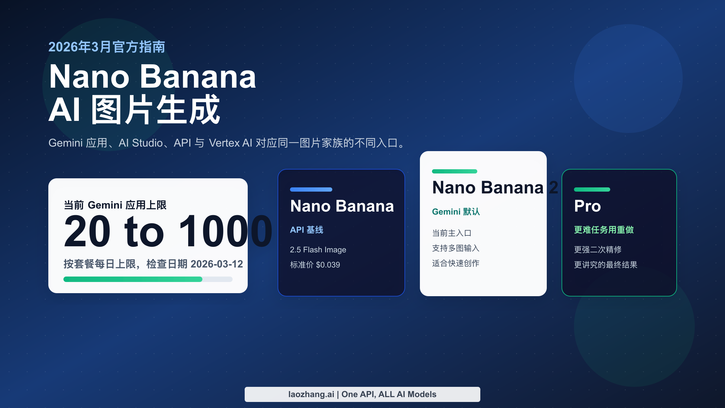 如果你只是想快速生成几张图,那么 Gemini 应用就是最省心的入口;如果你需要更可控的模型行为、想反复测试提示词、或者准备接 API,就应该先去 Google AI Studio,再决定是否迁移到 Gemini API 或 Vertex AI;如果你特别在意精修、文本排版、二次重做质量,那么 Nano Banana Pro 仍然值得关注,但它在 2026 年 3 月已经不是所有用户都能直接看到的默认前门。